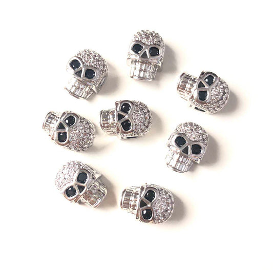 50pcs/lot CZ Paved Skull Head Spacers