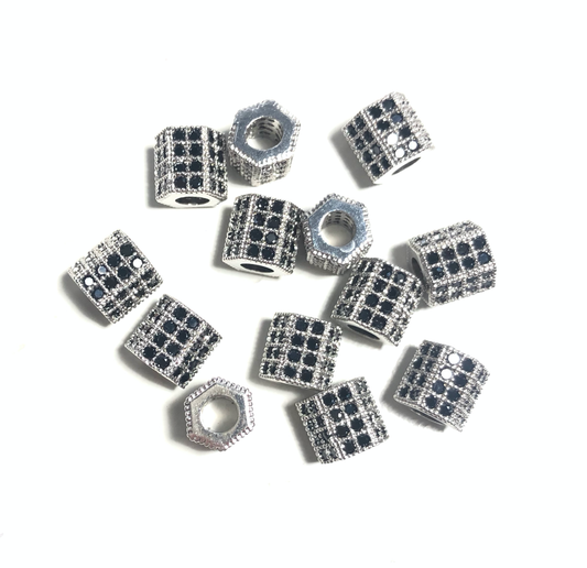 50pcs/lot 8*7mm Black CZ Paved Hexagon Spacers
