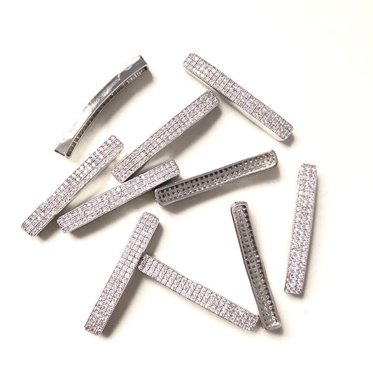50pcs/lot 34.4*5mm Clear CZ Paved Flat Tube Spacers