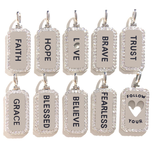 10pcs/lot CZ Paved Faith Hope Love Brave Trust Grace Blessed Believe Fearless Follow Your Heart Word Tags Charms Bundles