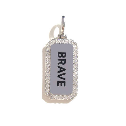 10pcs/lot 38*15mm CZ Paved Brave Word Tags Charms Pendants