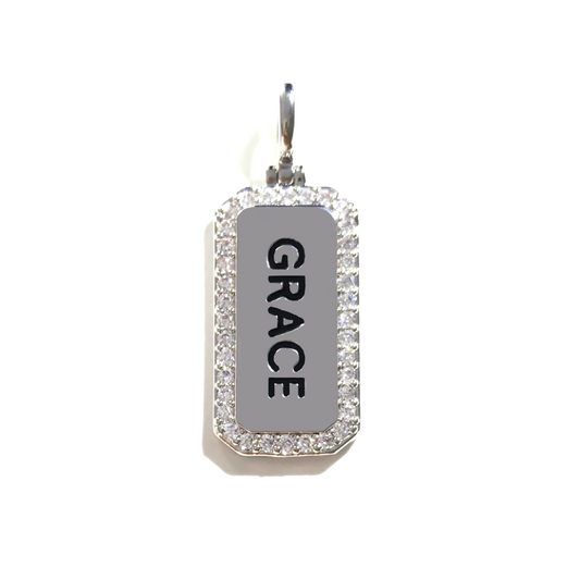 10pcs/lot 38*15mm CZ Paved Grace Word Tags Charms Pendants