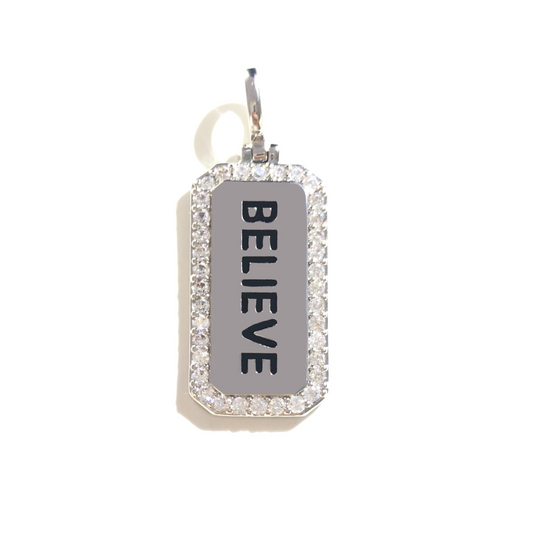 10pcs/lot 38*15mm CZ Paved Believe Word Tags Charms Pendants