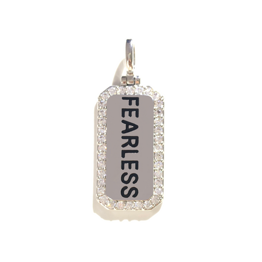 10pcs/lot 38*15mm CZ Paved Fearless Word Tags Charms Pendants
