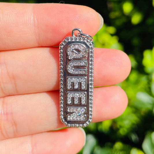 10pcs/lot 35.5*12mm CZ Paved Queen Word Tag Charms