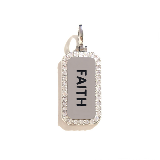 10pcs/lot 38*15mm CZ Paved Faith Word Tags Charms Pendants
