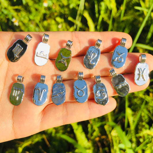 12pcs/lot 24mm CZ Paved Zodiac Charms-Silver