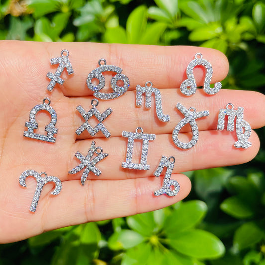 12pcs/lot 14*14mm CZ Paved Medium Size Zodiac Charms - Gold & Silver