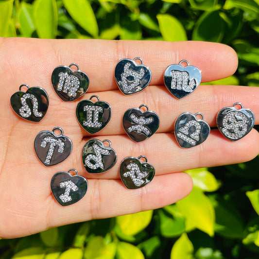 12pcs/lot 13*13mm CZ Paved Heart Zodiac Charms - Gold & Silver
