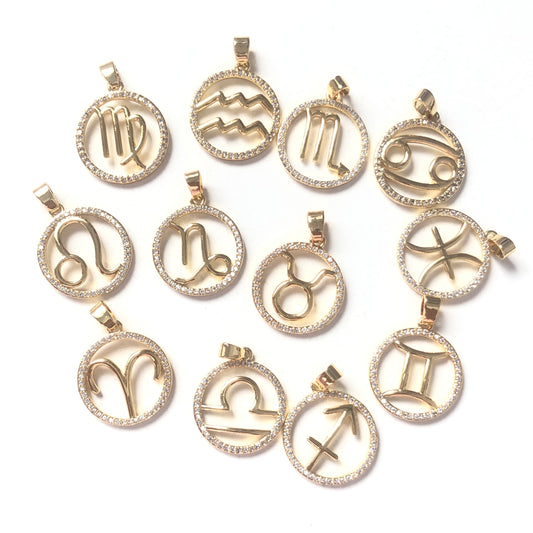 12pcs/lot 20mm CZ Paved Zodiac Charms-Gold