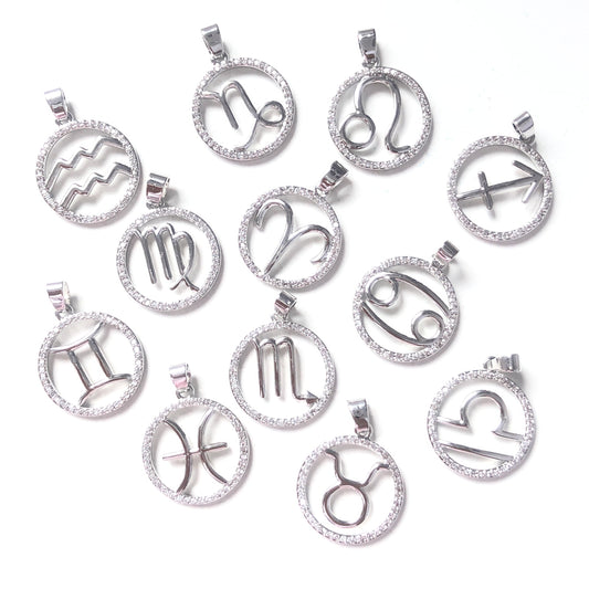 12pcs/lot 20mm CZ Paved Zodiac Charms-Silver