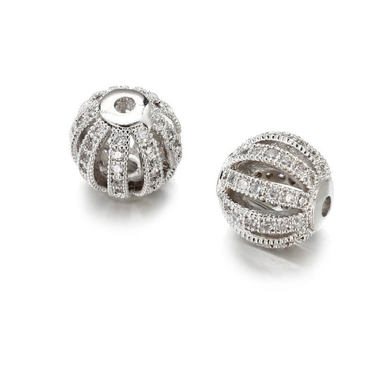 20pcs/lot 10mm CZ Paved Hollow Round Ball Spacers