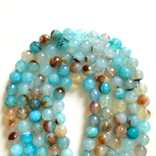 2 Strands/lot 8/10/12mm Light Blue Dragon Agate Faceted Stone Beads