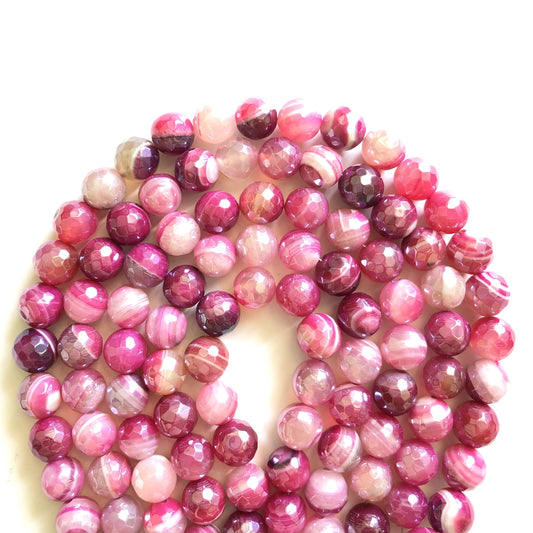2 Strands/lot 10, 12mm Fuchsia Electroplated Faceted Banded Agate Stone Beads