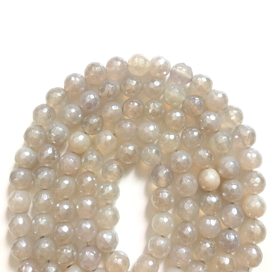 2 Strands/lot 10mm, 12mm Electroplated AB Gray Faceted Agate Stone Beads