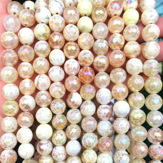 2 Strands/lot 12mm Electroplated AB Yellow Fire Agate Faceted Stone Beads