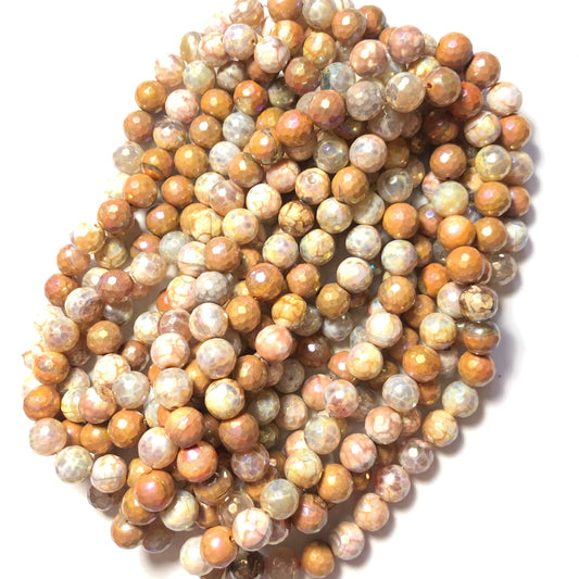 2 Strands/lot 12mm Electroplated AB Orange Fire Agate Faceted Stone Beads