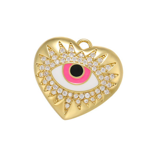 10pcs/lot 20*19mm Enamel Gold CZ Pave Evil Eye Heart Charm Pendants