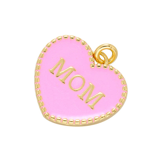10pcs/lot 20*21mm Colorful Enamel Heart Mom Word Charm Pendant