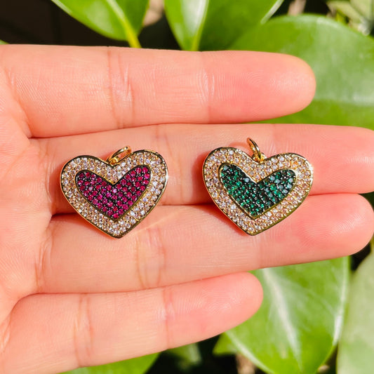 5pcs/lot 25*19mm Fuchsia Blue Green CZ Paved Heart Charm Pendants