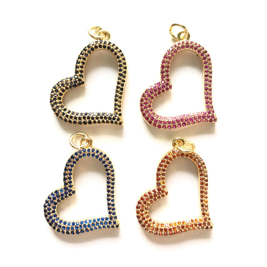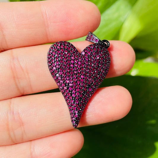 5pcs/lot 30*24mm Black/Fuchsia/Reddish Orange/Blue CZ Pave Heart Charms -Gold