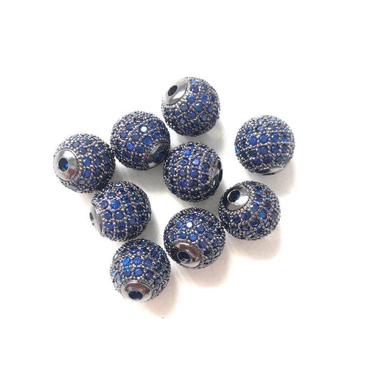 10pcs/lot 10mm Blue CZ Paved Ball Spacers
