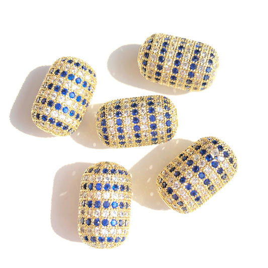 5-10pcs/lot Clear Blue CZ Paved Oval Beads Centerpiece Spacers