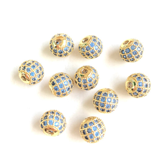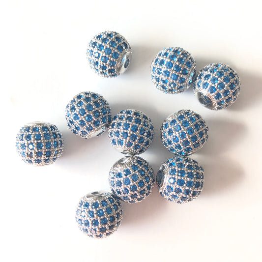 10pcs/lot 8mm Lake Blue CZ Paved Ball Beads Spacers