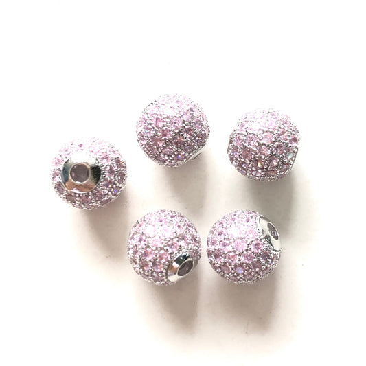 10pcs/lot 10mm Pink CZ Paved Ball Spacers