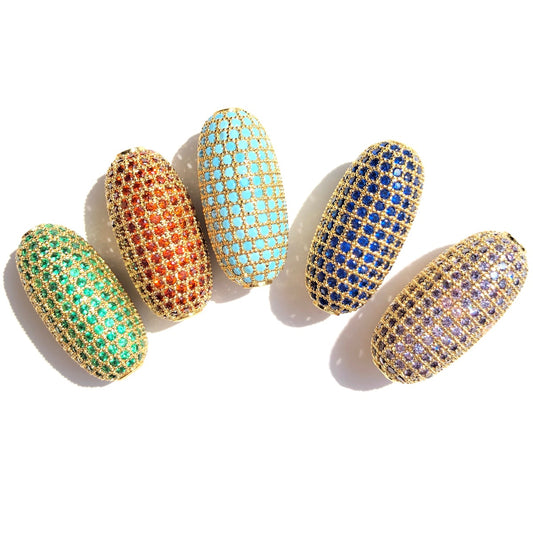 5-10pcs/lot Green Blue Turquoise Purple Reddish Orange Multicolor CZ Paved Oval Beads Centerpiece Spacers