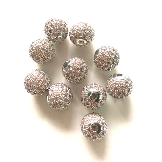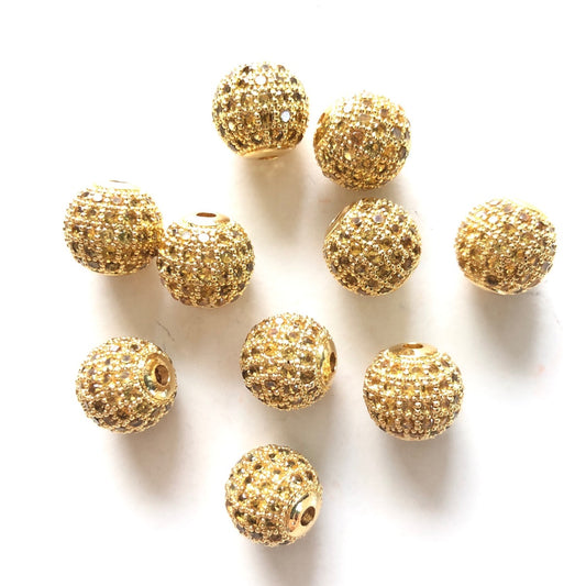 10pcs/lot 10mm Champagne CZ Paved Ball Beads Spacers
