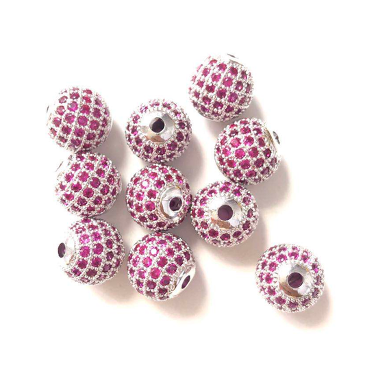 10pcs/lot 10mm Fuchsia CZ Paved Ball Spacers