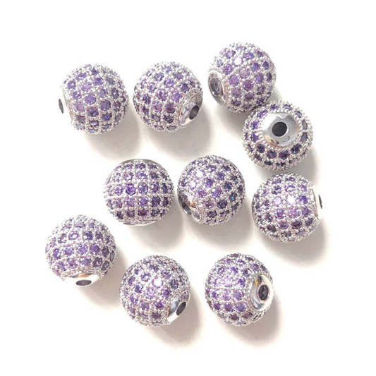 10pcs/lot 10mm Purple CZ Paved Ball Spacers