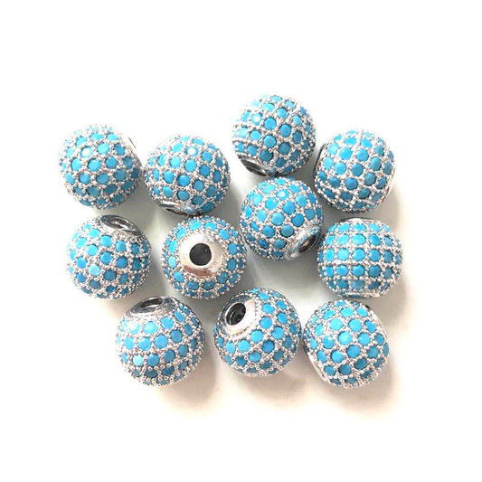 10pcs/lot 10mm Turquoise CZ Paved Ball Spacers