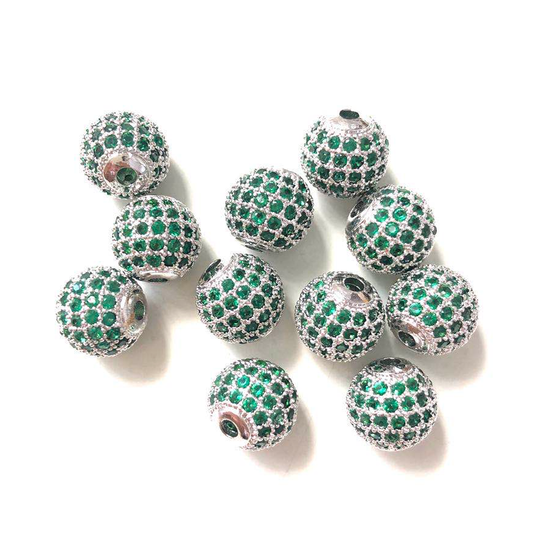 10pcs/lot 10mm Green CZ Paved Ball Spacers