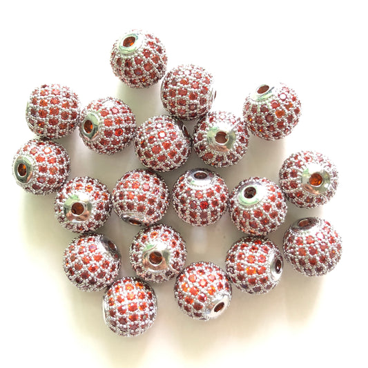 10pcs/lot 10mm Reddish Orange CZ Paved Ball Spacers