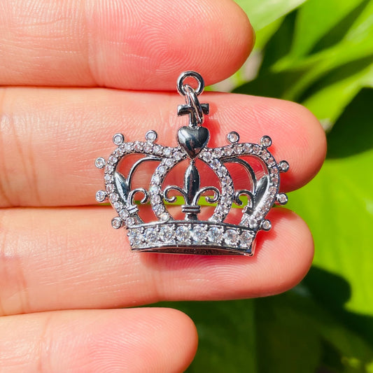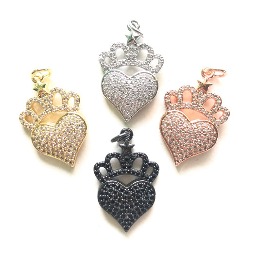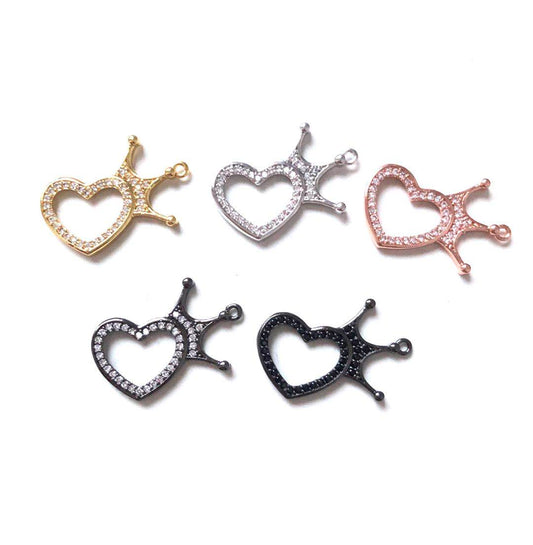 10pcs/lot 24*21.5mm CZ Paved Crown Heart Charms