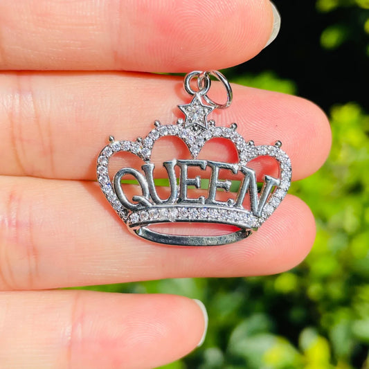 10pcs/lot 28*25mm CZ Paved Crown Queen Word Charms