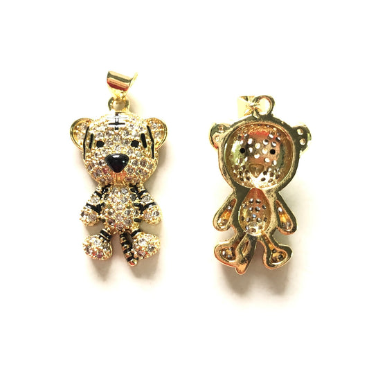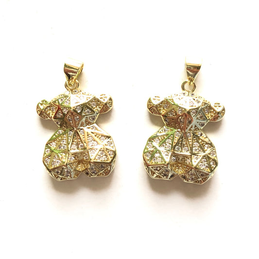 5pcs/lot 22 *17mm Gold Plated CZ Cute Baby Bear Charm Pendants