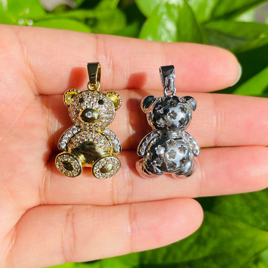 10pcs/lot 25*16.3mm CZ Pave Cute 3D Bear Charms as