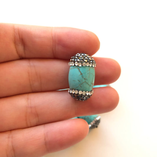 5pcs/lot Black Rhinestone Paved Blue Turquoise Beads Focal Spacers