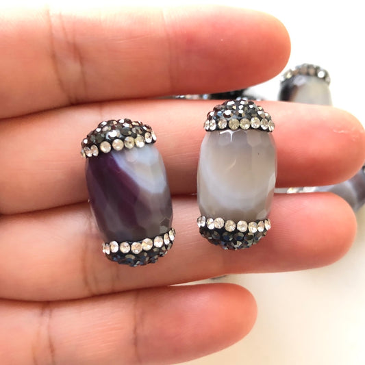 5pcs/lot Black Rhinestone Paved Faceted Gray Banded Agate Stone Beads Focal Spacers