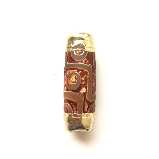 1PC 41*14mm Gold Plated Bezel Tibetan Agate Spacer Focal Beads