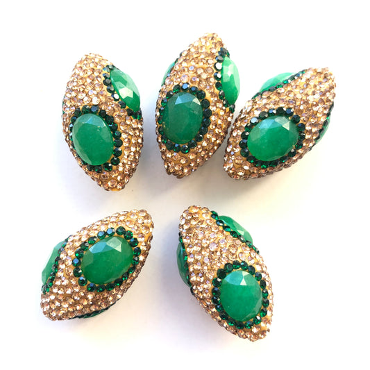 5pcs Green Turquoise Stone Gold Rhinestone Pave Oval Spacers Focal Beads