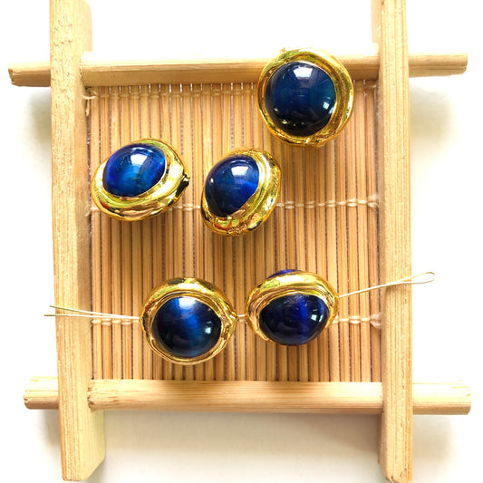 2-5-10pcs/lot 16.5*16mm Gold Plated Navy Blue Tiger Eye Spacers Focal Beads