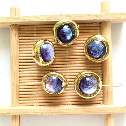 2-5-10pcs/lot 17*16mm Gold Plated Purple Colored Glaze Spacers Focal Beads