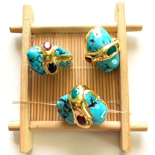 2-5-10pcs/lot 26*23mm Gold Plated Howlite Turquoise Stone Spacers Focal Beads