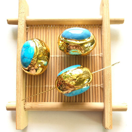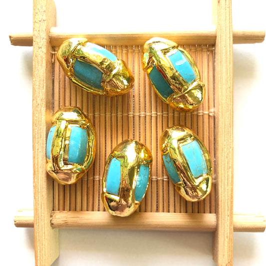 2-5-10pcs/lot 23.5*18.5mm Gold Plated Howlite Turquoise Stone Spacers Focal Beads
