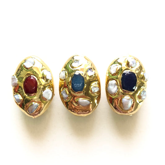 2-5-10pcs/lot 27*18mm Gold Plated Freshwater Pearl Oval Spacers Focal Beads