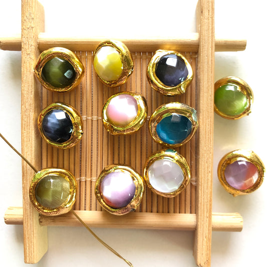 5-10pcs/lot 16*15mm Gold Plated Multicolor Faceted Cat's Eye Spacers Focal Beads